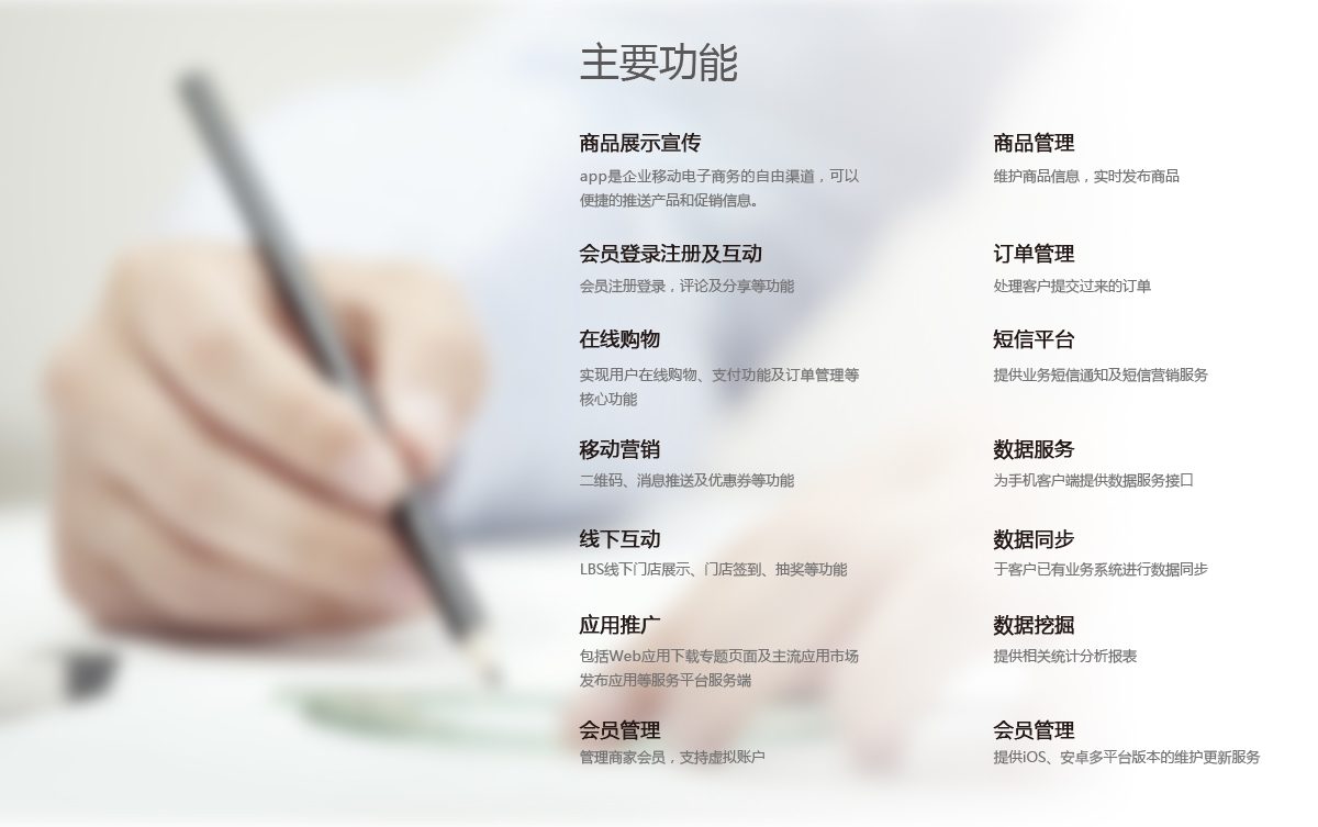 "丰火达科技"电子商务行业解决方案可以为客户提供全面的咨询、定制、开发等系列服务,随着电子商务在互联网上的应用丰富多彩、技术的更新、移动设备的普及,通过移动设备进行浏览、购物、查询的消费者越来越多,移动设备具备有随时随地的进行交互的便利性,结合硬件的拍照、录音、GPS定位能力、重力感应、扫描等功能的应用都有成为电商创意功能的潜力等,能够更好的提供精确服务和更丰富的交互更具人情味;