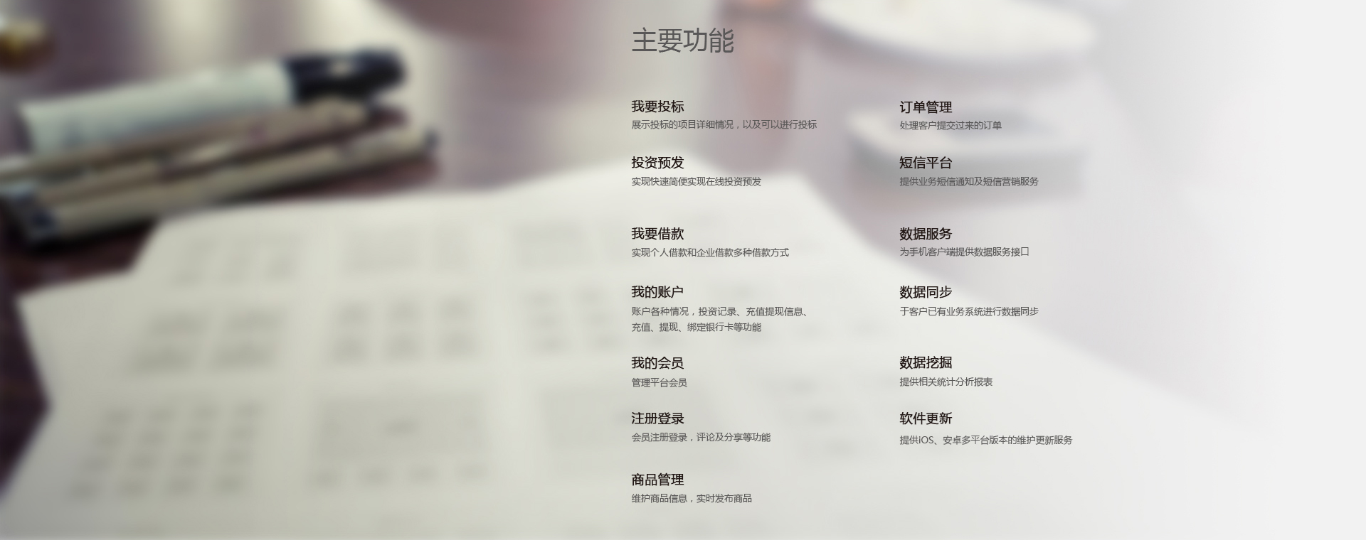 "丰火达科技"P2P金融行业解决方案可以为客户提供全面的咨询、定制、开发等系列服务。近年来,随着移动智能终端的普及,特别是苹果公司的iPad、iPhone等产品的普及以及Android开放系统的崛起颠覆了传统的移动终端市场格局,技术的进步带来了更智能化的操作和更优秀的用户体验,降低了移动渠道产品价值的传递成本,从而激发出大量的市场需求。